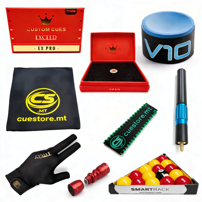 Pick the perfect accessories — chalks, cue towels, tips, and cue care products.